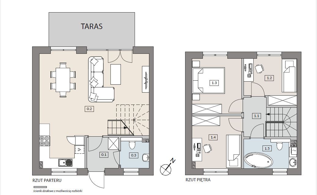 Nieruchomość w zabudowie szeregowej w stanie developerskim o powierzchni 75,57 m2 składa się z parteru i pierwszego piętra.
