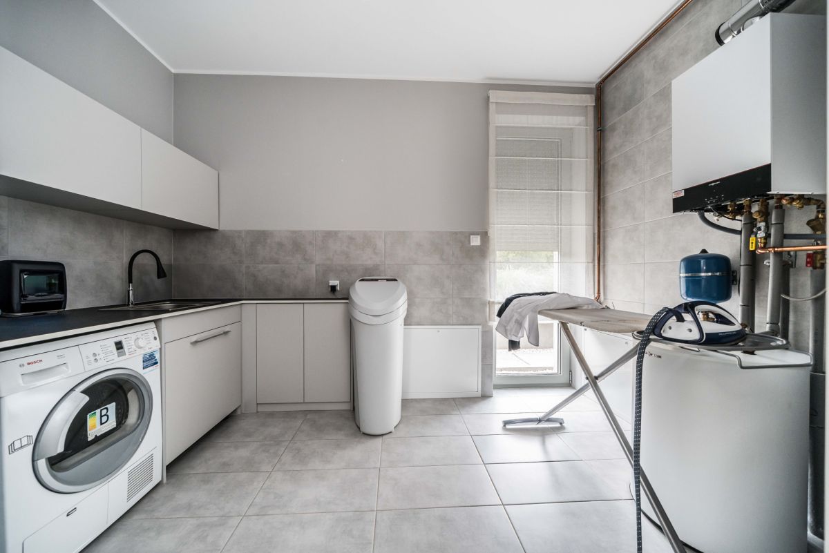 W tej części znajduje się również pomieszczenie gospodarcze z pralnią i suszarnią.