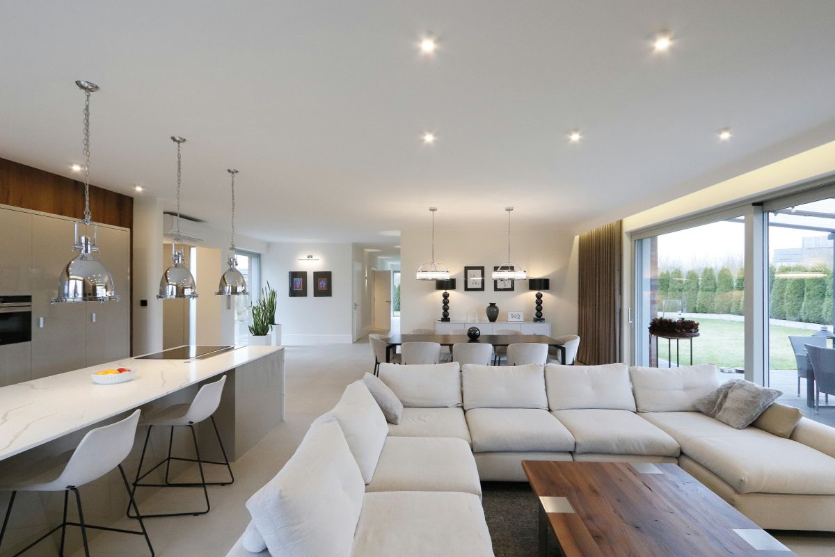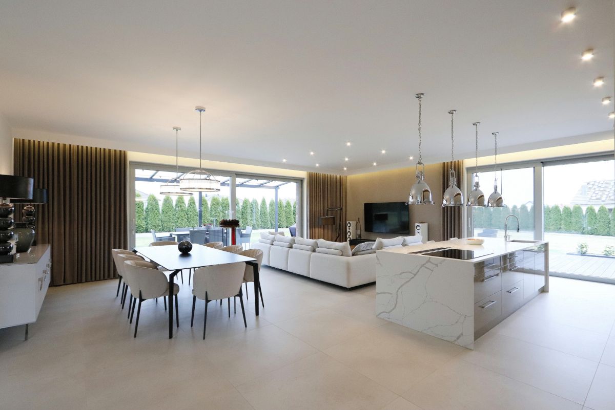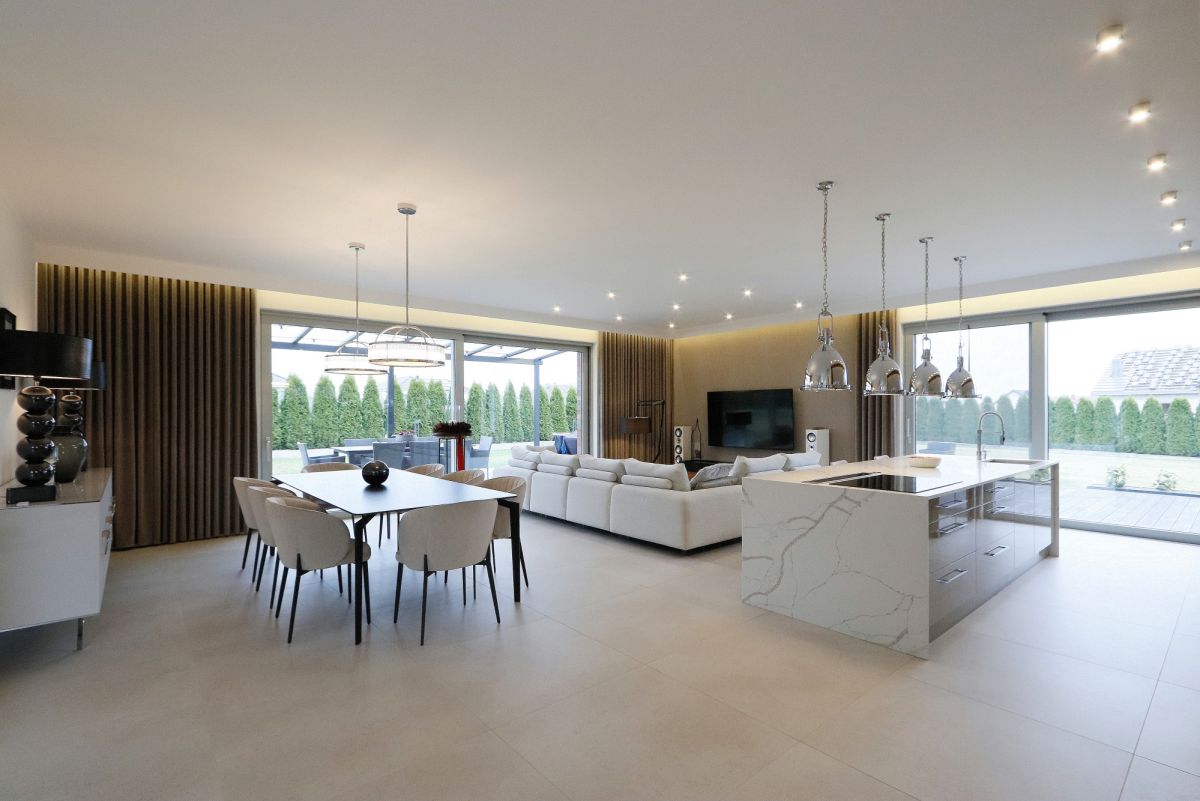 Nowoczesna architektura, spójna kompozycja przestrzeni i dopracowany standard wykończenia.