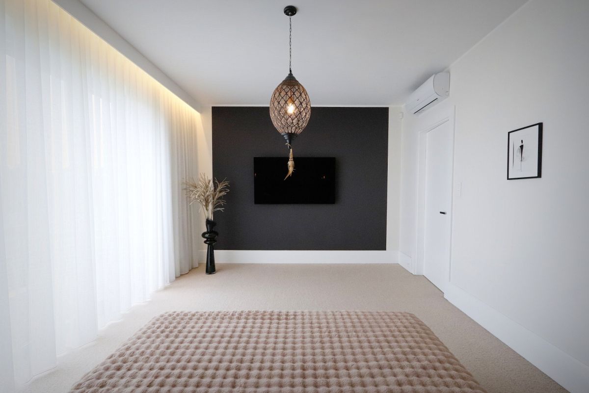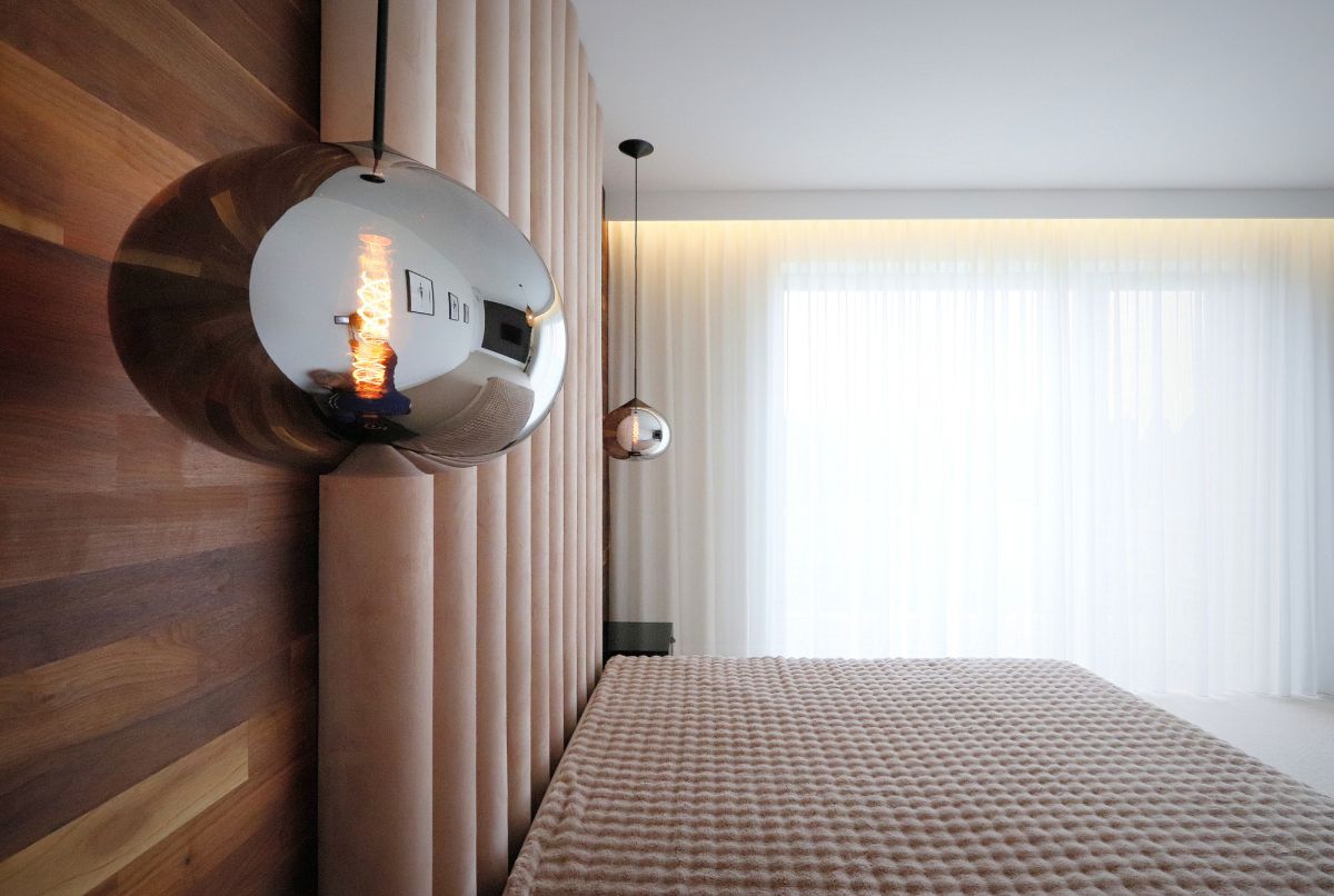 Przestrzeń prywatna została wyraźnie oddzielona od strefy dziennej, co zapewnia komfort i spokój.