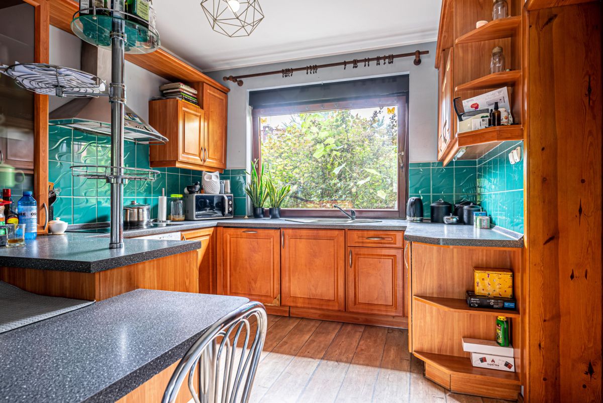 • Kuchnia z małą jadalnią w przejściu do salonu