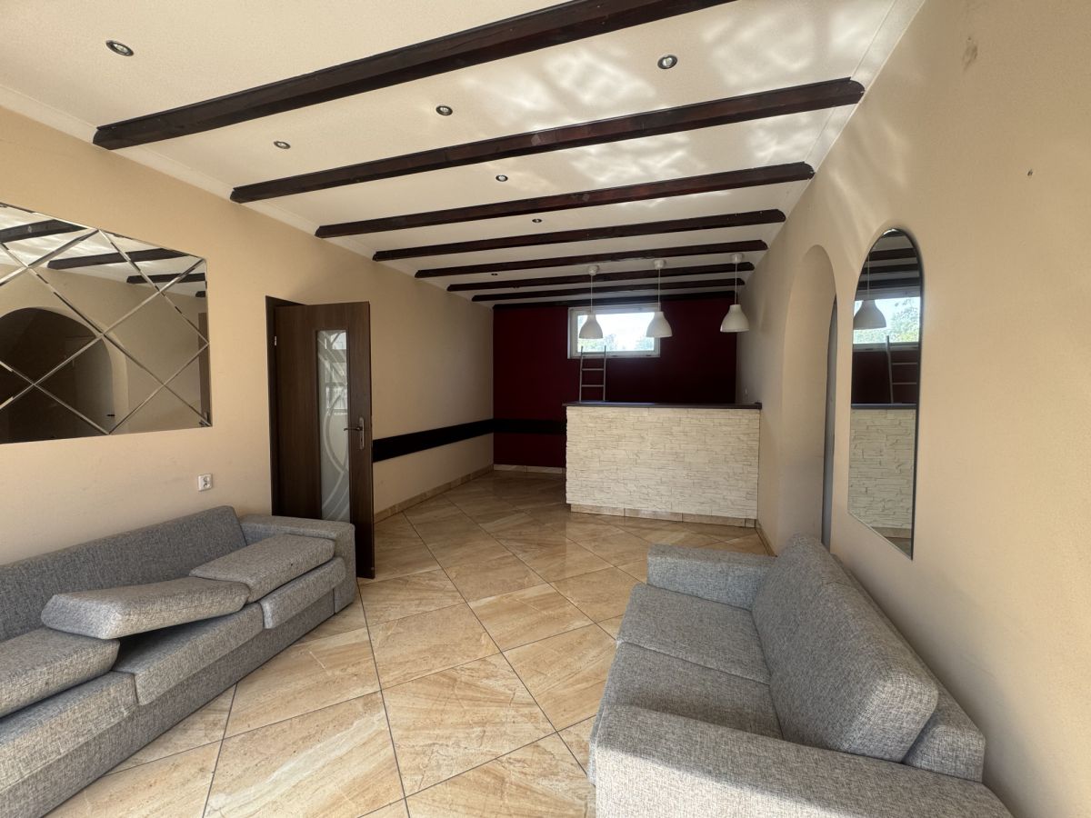 W obecnym układzie na podwyższonym parterze znajduje się zadbane mieszkanie ok. 100 m² z trzema niezależnymi pokojami, kuchnią i łazienką - gotowe do zamieszkania. W drugiej części budynku mieściła się restauracja z dużą salą w przyziemiu oraz cztery pokoje gościnne na wyższych kondygnacjach. Ta część wymaga remontu, ale daje szerokie możliwości aranżacyjne - np. apartamenty na wynajem, biura czy gabinety.
