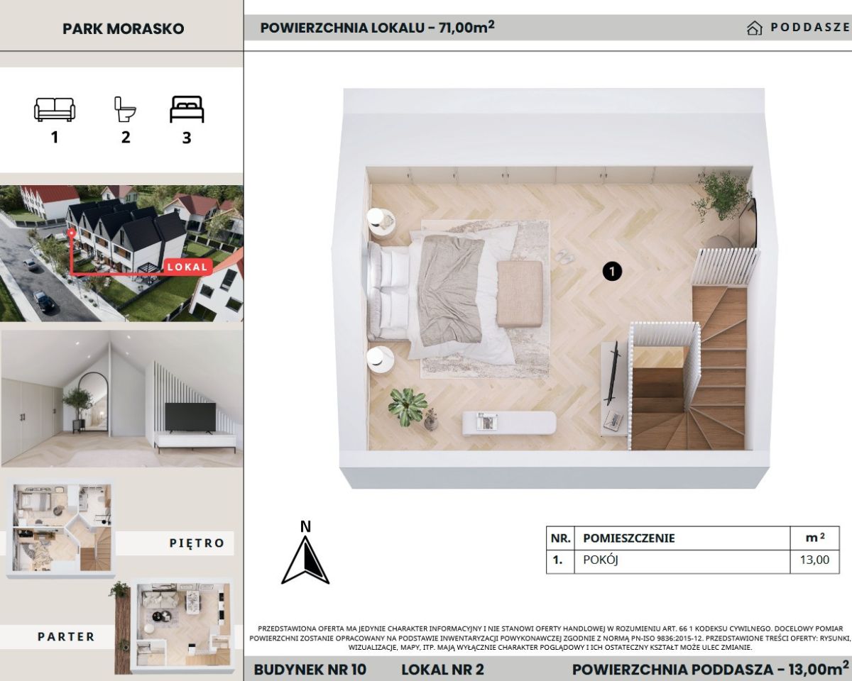 - otwarta przestrzeń: 13 m2 - z możliwością wytyczenia garderoby lub dodatkowej łazienki.