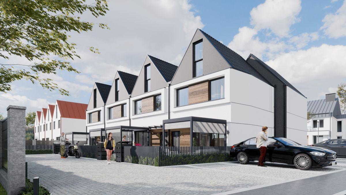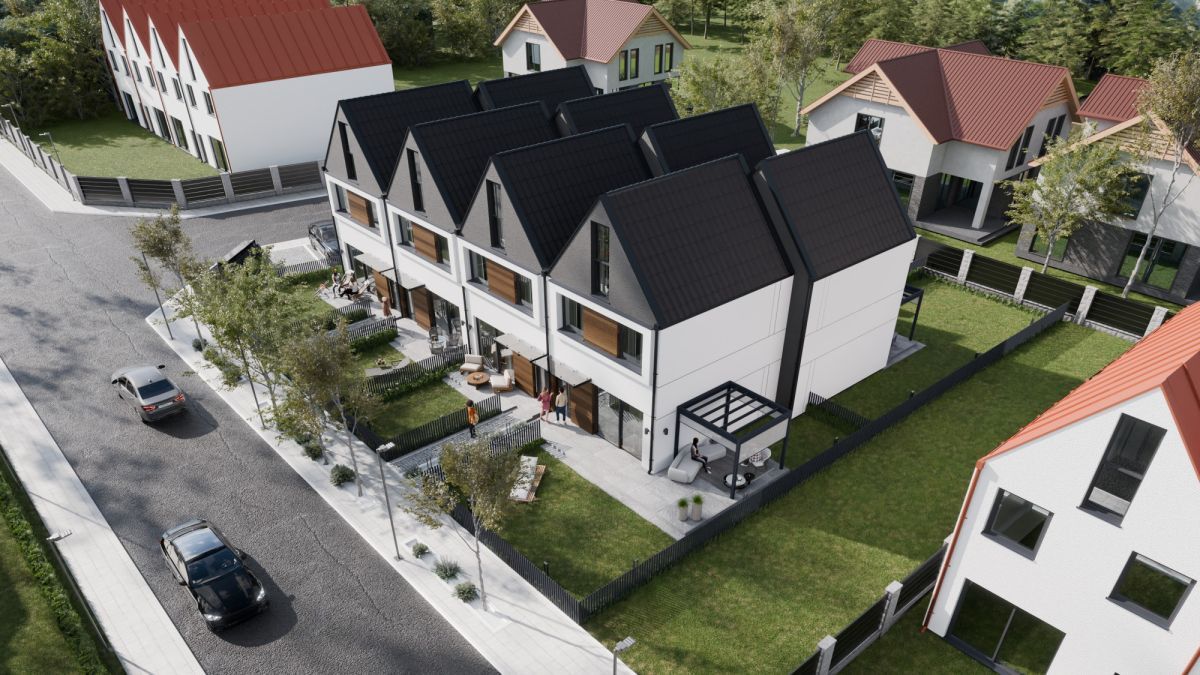 Nowoczesne, energooszczędne domy w zabudowie szeregowej z prywatnymi ogródkami oraz miejscami postojowymi - idealne dla osób ceniących komfort i spokój.