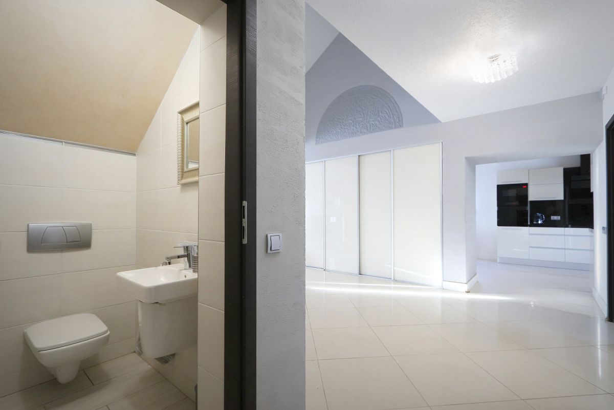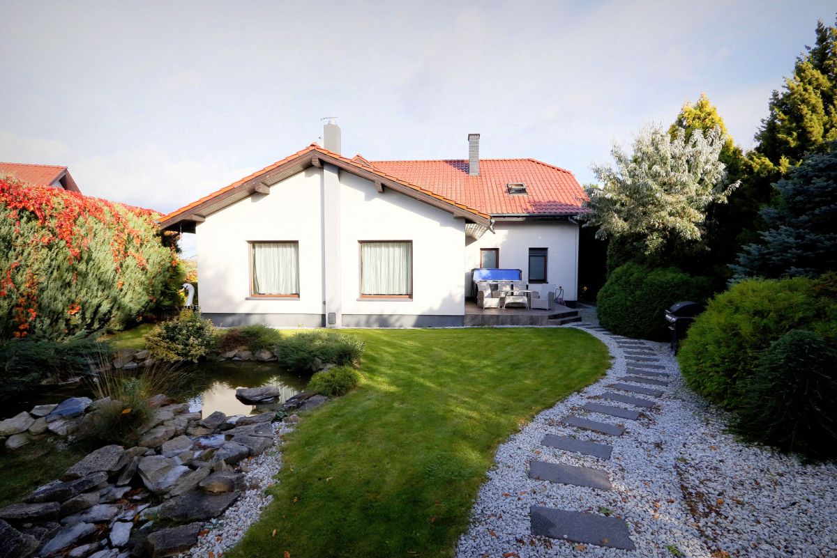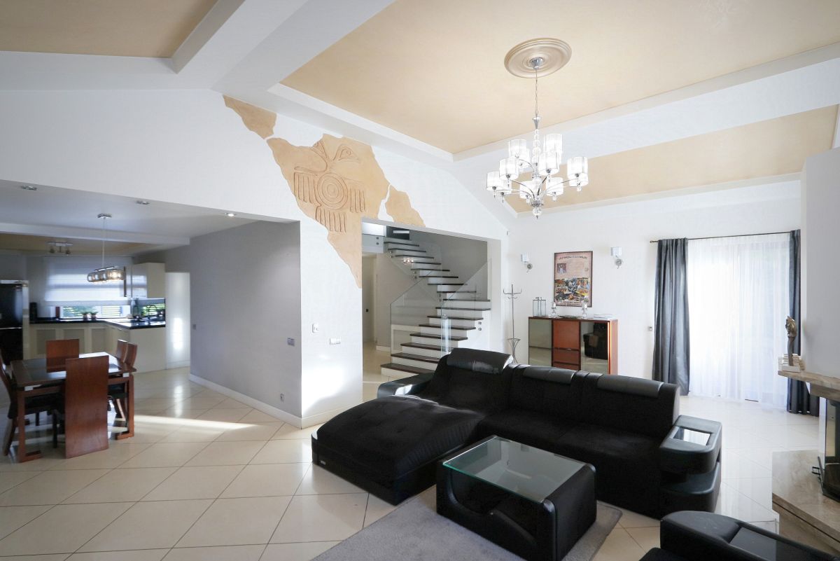 Nowoczesny charakter wnętrza, wysoka jakość wykonania i piękny ogród z basenem tworzą spójną, wyjątkowo przyjemną całość.