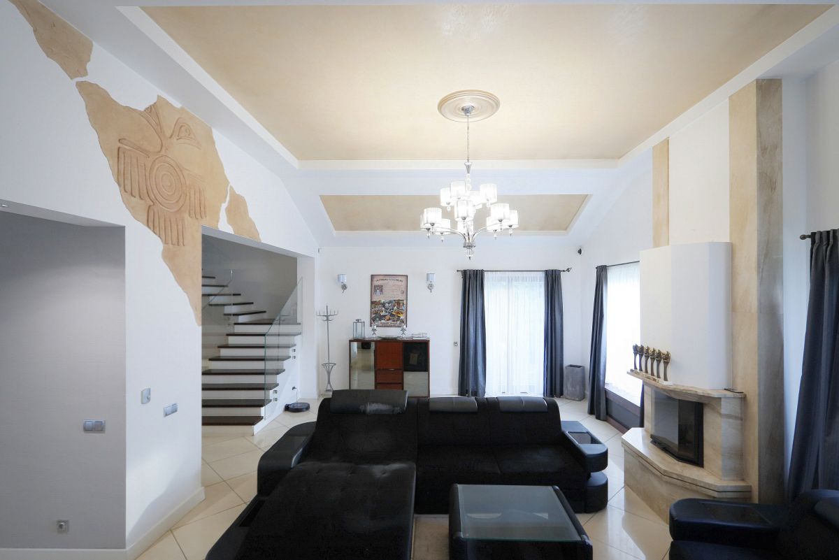 • reprezentacyjny salon o wysokości ok. 5 m - z kominkiem, oryginalnymi stiukami i wyjściem na taras z jacuzzi,