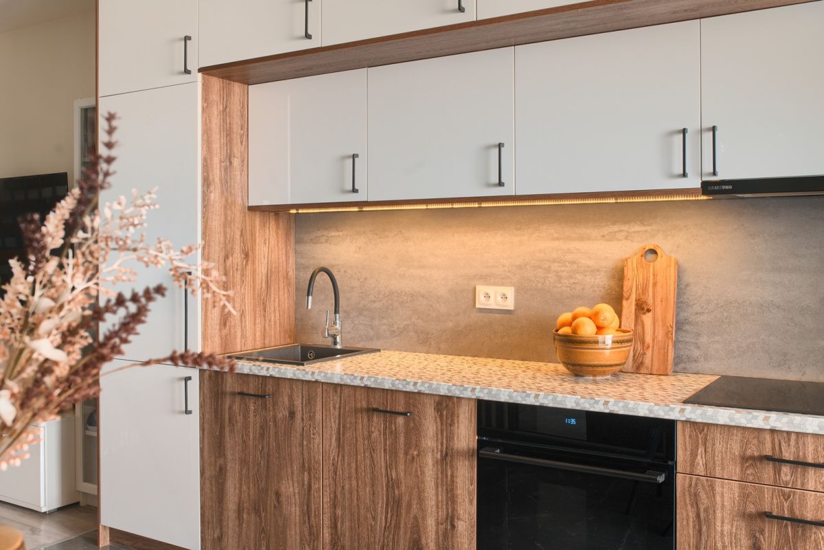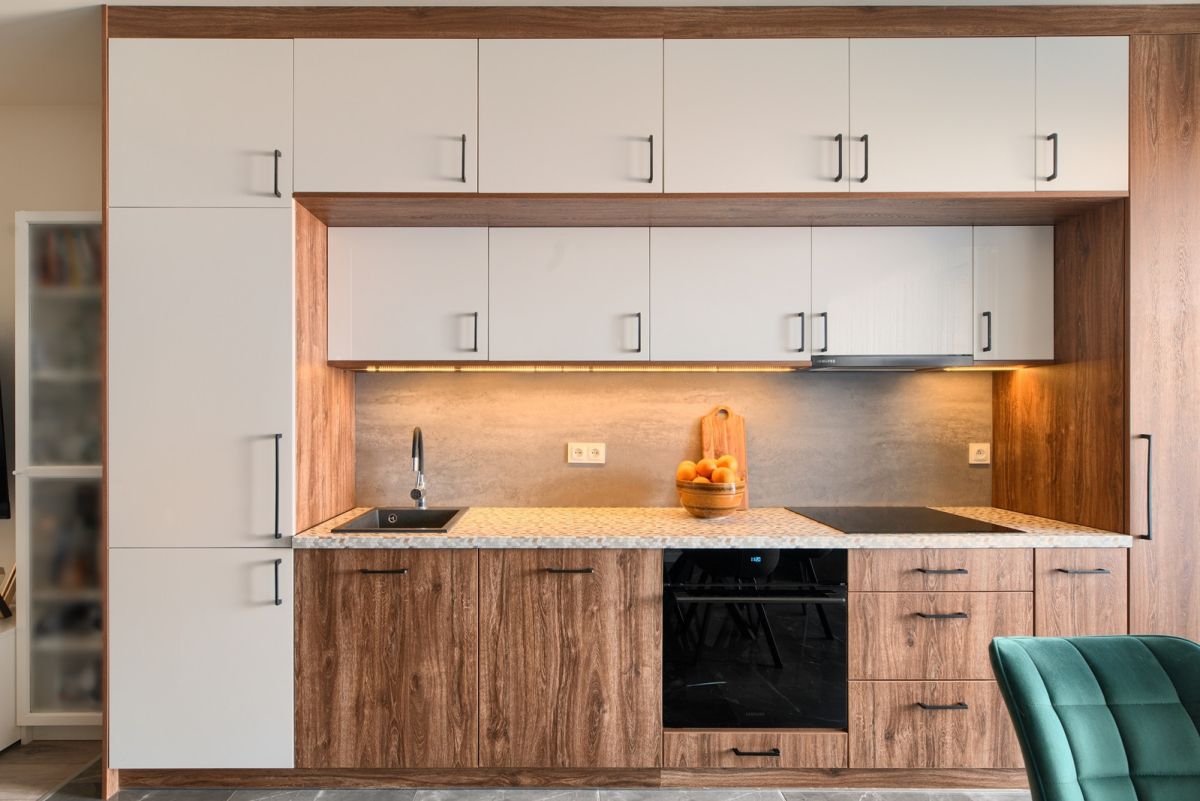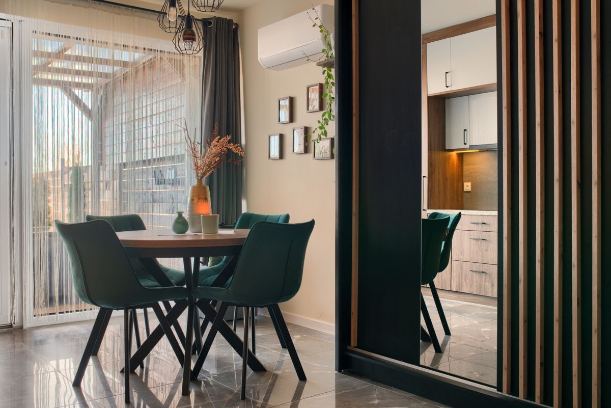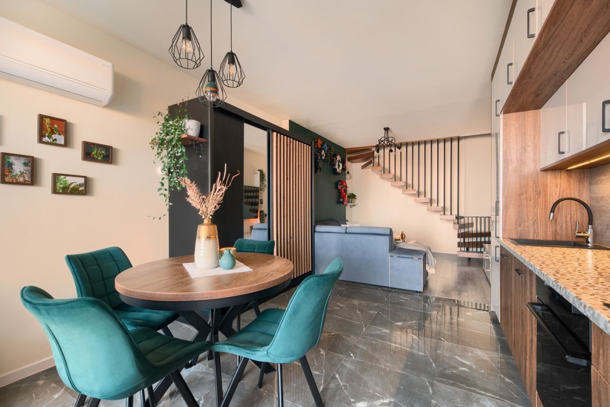 - pokój dzienny z aneksem kuchennym - 27 m2 - z wyjściem na zadaszony taras i ogródek o powierzchni 33 m2.