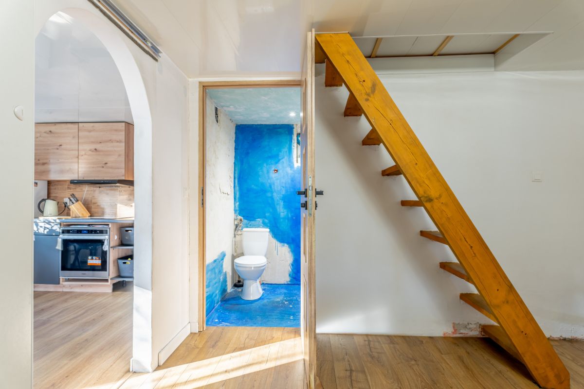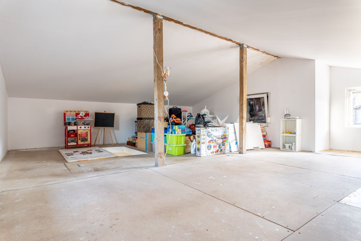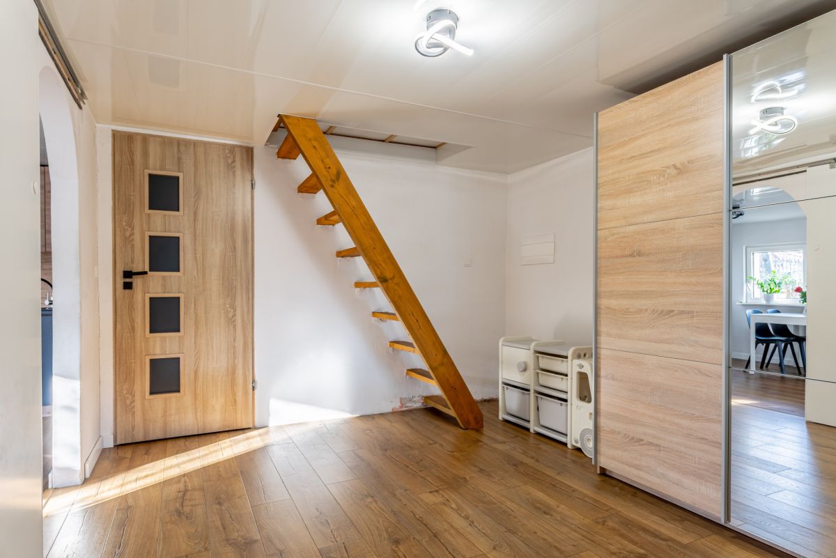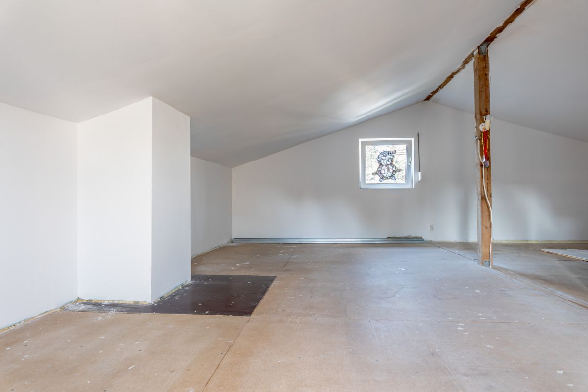 Na piętrze otwarta przestrzeń do zagospodarowania, można wydzielić ścianki i zrobić 3 pokoje.