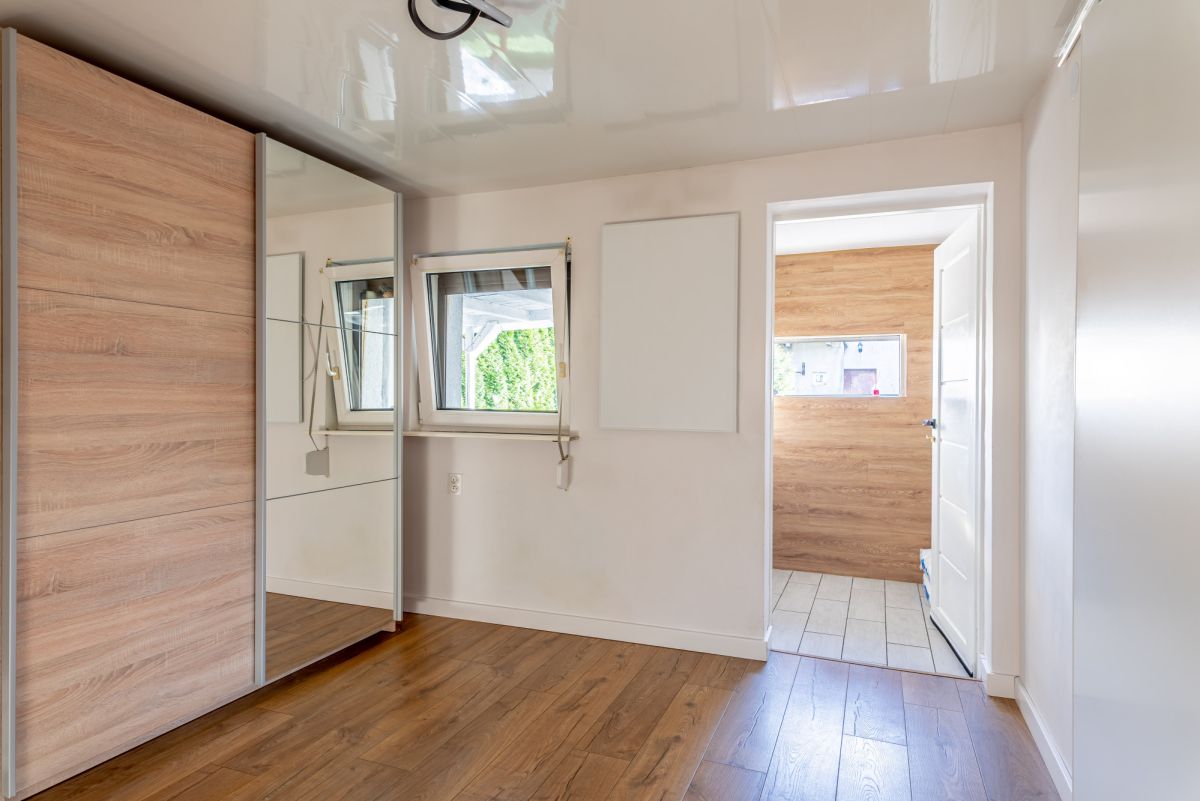 Okna wyposażone w rolety zewnętrzne.