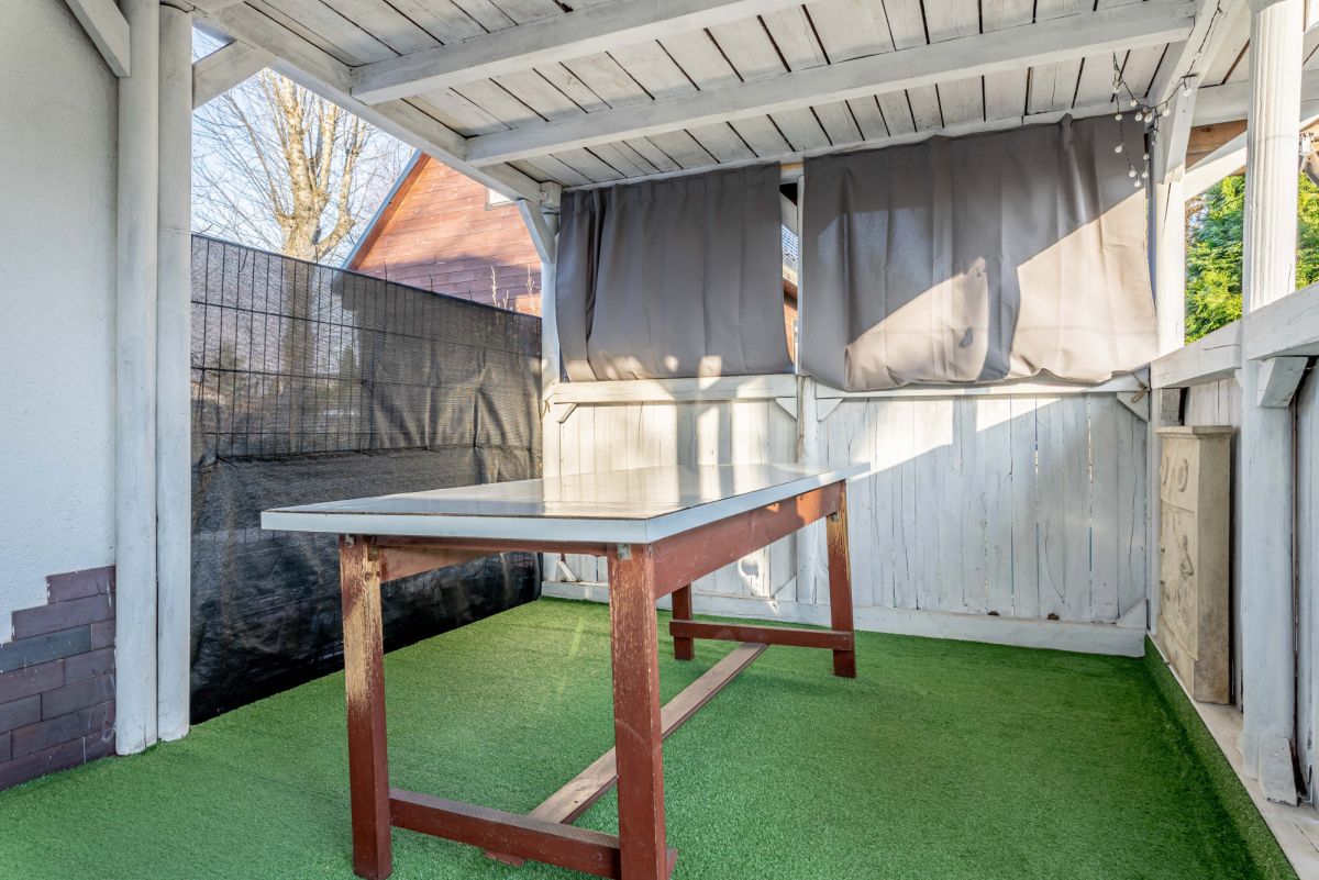Na zewnątrz ogród gdzie można miło spędzić czas po pracy, rosną przepiękne magnolie.