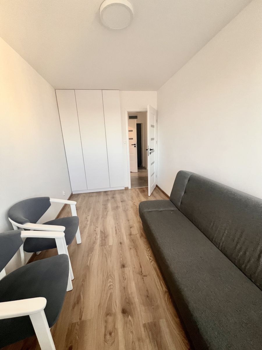 - Na wprost od wejścia znajduje się mniejszy pokój z wbudowaną szafą wnękową