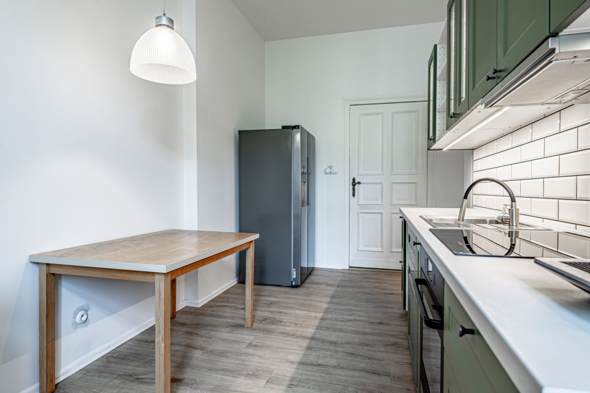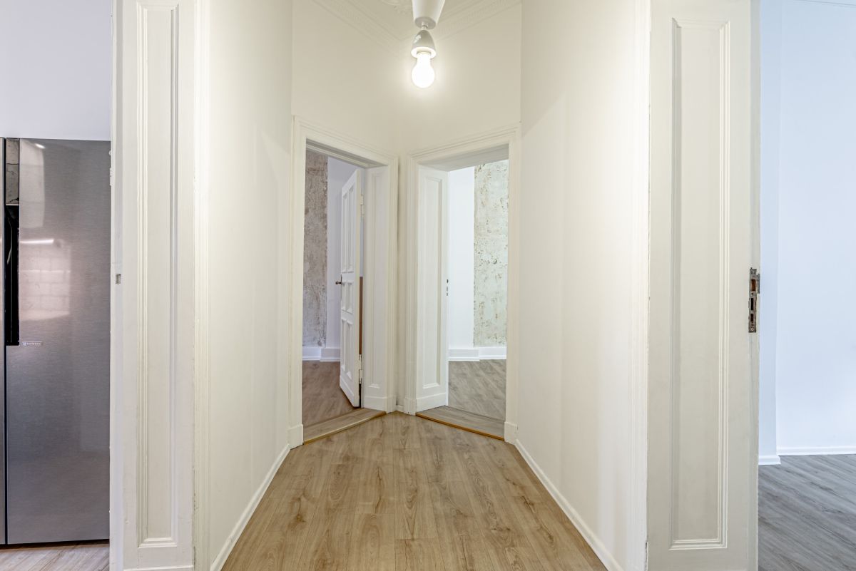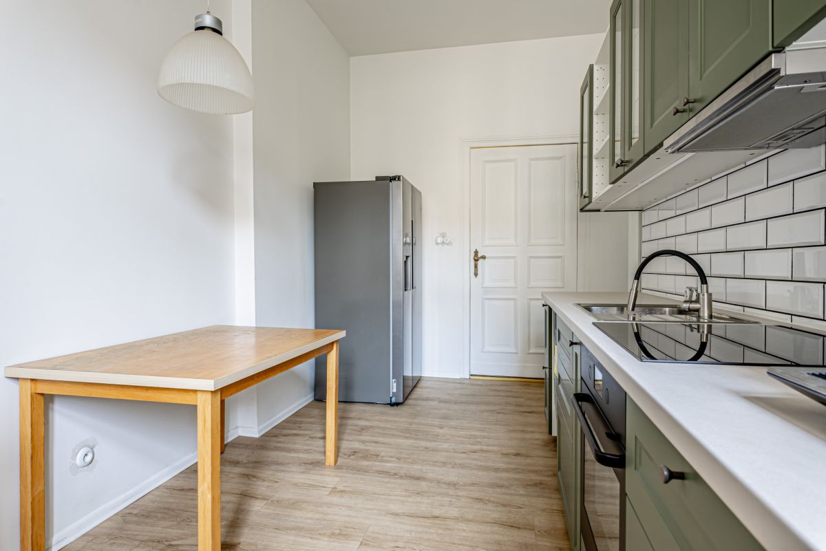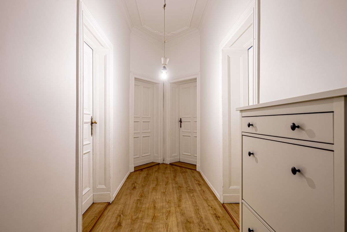 Klasyczna kamienica, wysokie wnętrza i dobrze uporządkowany układ pomieszczeń.