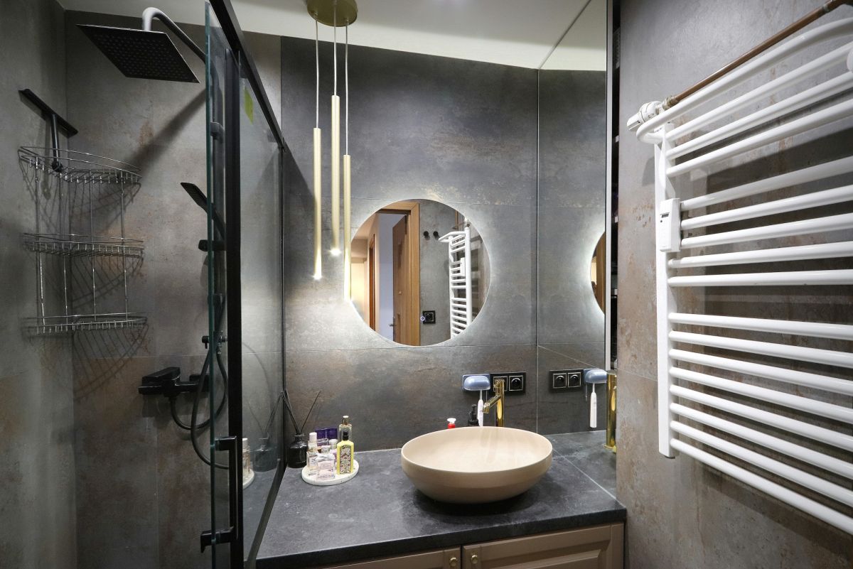 Łazienka jest wykończona w eleganckim, nowoczesnym stylu, z prysznicem. Oddzielna toaleta..