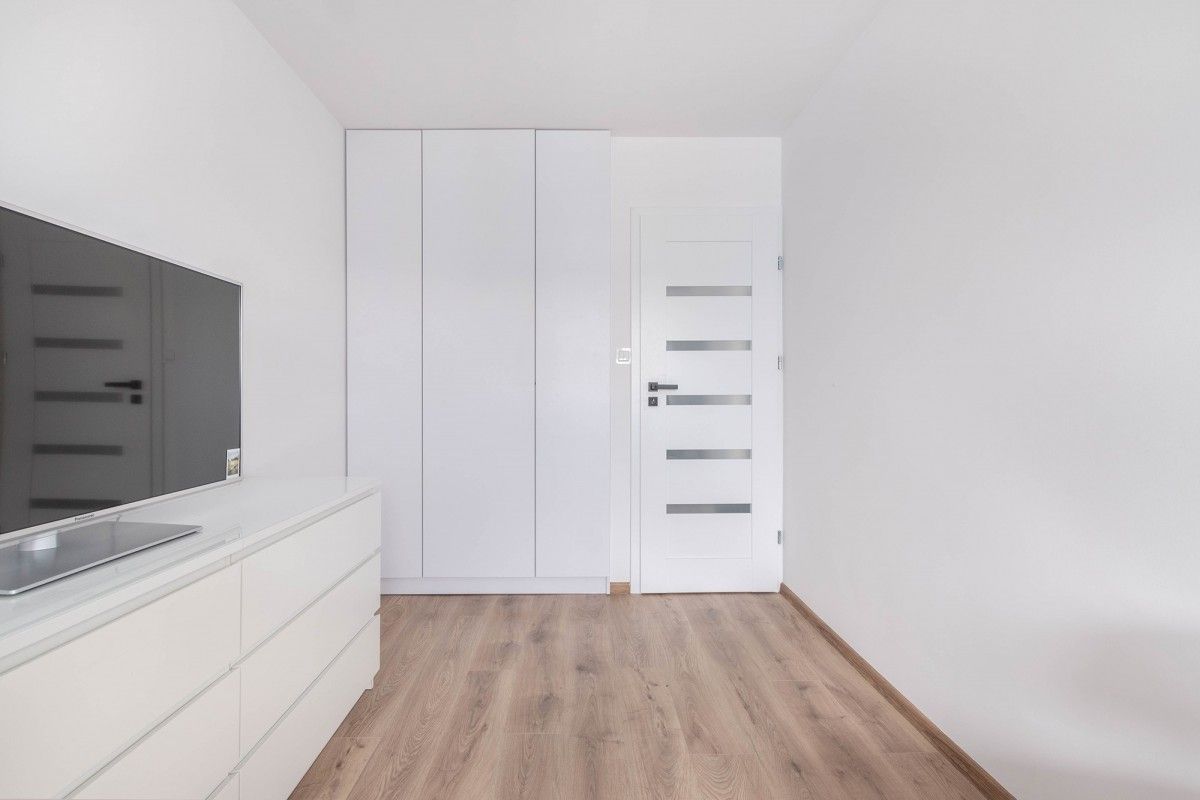 - Na wprost od wejścia znajduje się mniejszy pokój z wbudowaną szafą wnękową