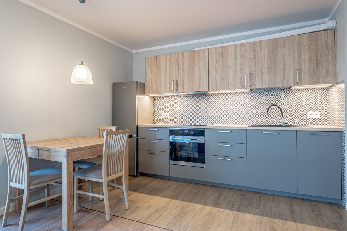 - Kuchnia w pełni umeblowana i wyposażona w nowe sprzęty agd: zmywarka, lodówka, płyta, piekarnik, okap.