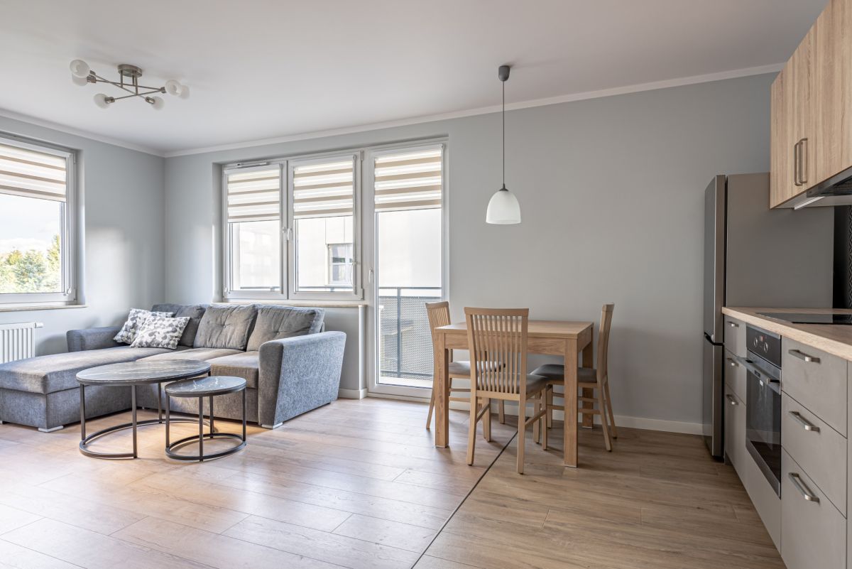 Mieszkanie bardzo jasne, częściowo umeblowane, gotowe do wprowadzenia.