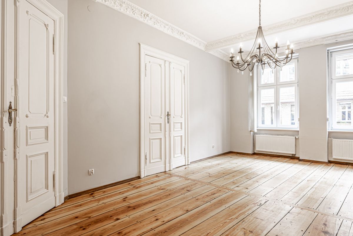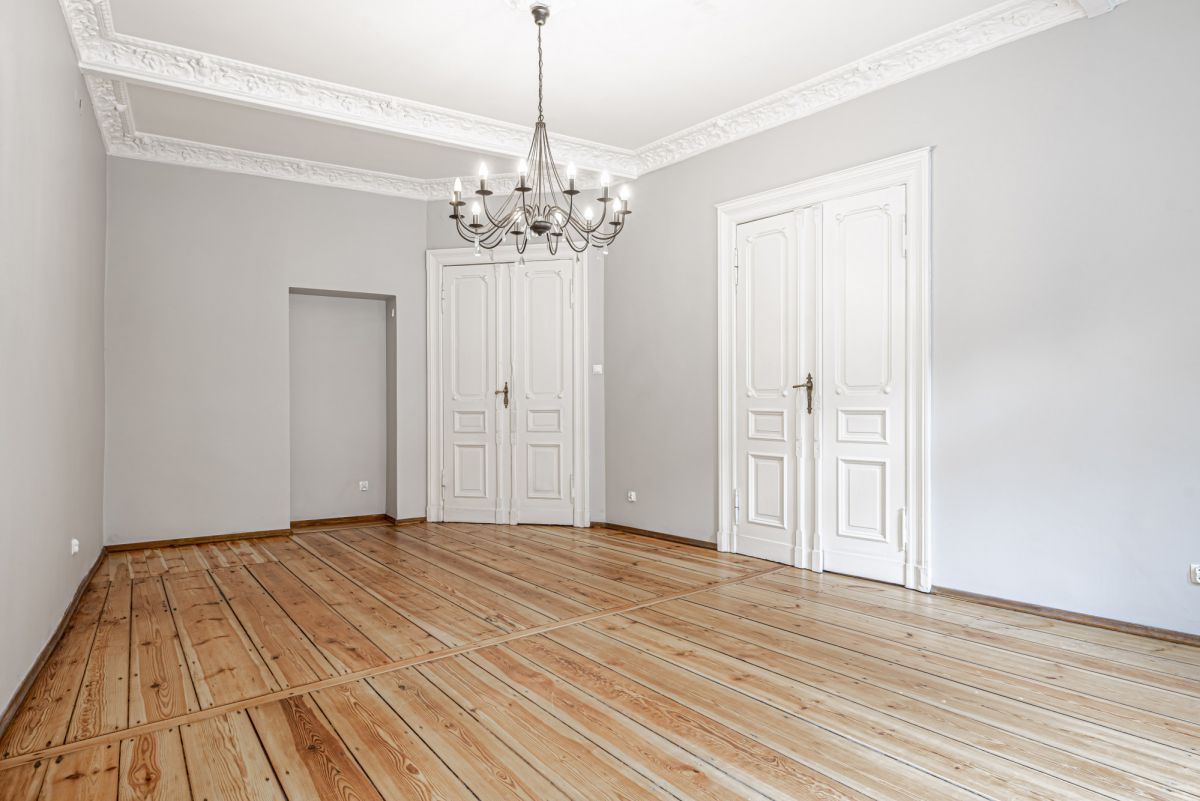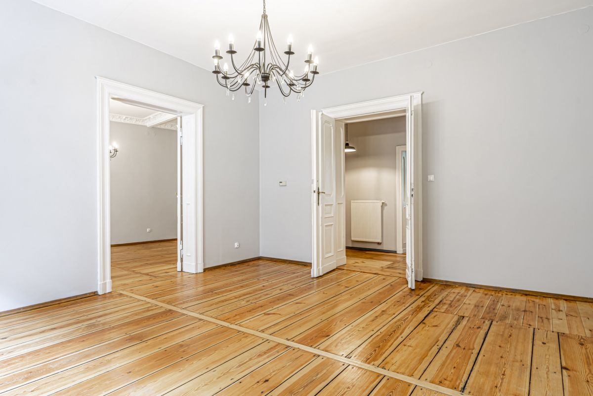 Apartament o wielkości 85 m2, na parterze zadbanej kamienicy, z niezależnym wejściem z klatki schodowej.